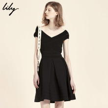 Lily2017夏新款女装经典收腰小黑裙V领显瘦连衣裙117210B7319