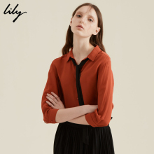 Lily2017春新款女装时尚收腰帅气衬衫连衣裙117120C7223