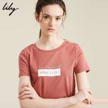 LilyT恤2017夏新款女装商务圆领修身OL字母t恤117239A8941