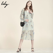 Lily2017夏新款女装商务OL性感透视网纱刺绣连衣裙117220C7545