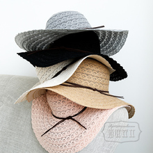 系带钩花遮阳帽女韩版防晒帽子女夏天海边沙滩帽太阳帽可折叠