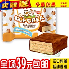 俄罗斯进口小牛奶牛巧克力威化饼干特产休闲零食品袋装250g满包邮