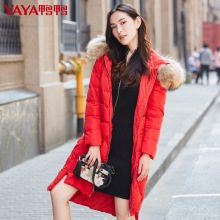 鸭鸭2017新款女装连帽过膝加厚加长款外套羽绒服女修身潮过膝长款