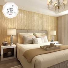 伊然素雅纯色横条纹壁纸 环保无纺布墙纸温馨米黄色墙纸卧室满铺