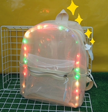 韩版中学生书包 百搭原宿小清新刷街双肩包女透明果冻包闪灯背包