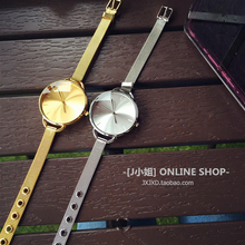 日系简约文艺森系复古情侣电子手表ulzzang金色圆形细带男女腕表