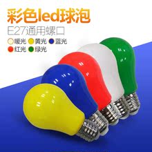 LED彩色灯泡E27螺口七彩小夜灯螺旋红色6W黄绿蓝彩色球泡