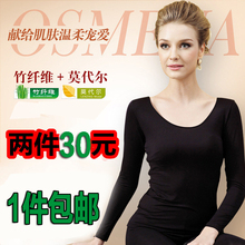 包邮莫代尔大圆领超薄款贴身长袖内衣女士纯棉单件上衣秋衣打底衫