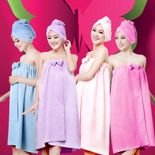 浴巾成人吸水抹胸加厚浴巾浴袍套装可穿情侣款通用浴帽纤维蝴蝶结