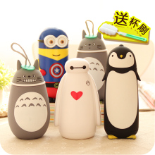 卡通企鹅双层玻璃杯可爱龙猫学生便携水瓶随手杯儿童杯创意水杯子