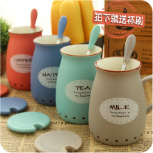 简约个性牛奶杯带盖勺陶瓷杯子情侣咖啡杯大号马克杯可爱创意水杯