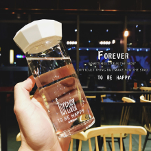 韩国钻石菱形简约透明玻璃水瓶男女士时尚情侣带盖防漏随手水杯子