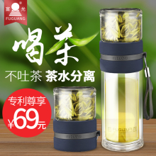 富光茶水分离泡茶杯双层玻璃杯创意随手杯过滤杯子男茶水杯便携
