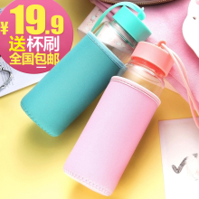 韩国水杯女可爱超萌玻璃杯便携随手创意学生水杯韩版带盖个性杯子