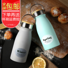 保温杯男女学生韩式创意不锈钢可爱情侣儿童带盖杯子印字便携水杯