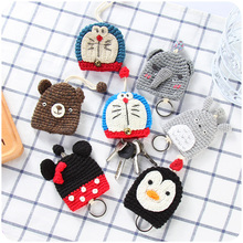 韩版创意卡通可爱动物猫咪小熊针布艺织钥匙包手工可拉伸钥匙套