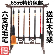 包邮文房四宝纯手工龙头鸡翅木笔架笔挂送兼毫狼毫羊毫毛笔6支