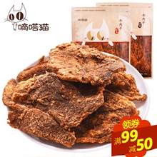 减【嘀嗒猫_牛肉干】休闲肉类零食香辣/五香手撕牛肉片100g/袋