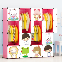简易衣柜卡通简约现代经济型组装 钢架布艺儿童塑料组合衣橱收纳