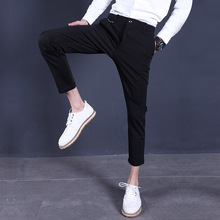 九分裤男士裤子夏季新款2017休闲裤男韩版潮流百搭修身黑色小脚裤