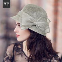 真享2016春夏季欧美优雅麻纱帽女英伦婚纱宴会礼帽沙滩帽遮阳帽子