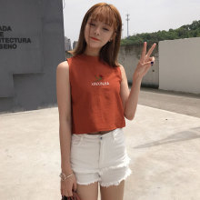 夏季新款字母花朵刺绣圆领无袖T恤背心修身显瘦短款上衣打底衫女