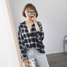 2017春装新款韩版休闲百搭格子衬衣宽松显瘦翻领长袖衬衫女学生潮