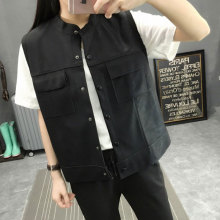 2017春装新款韩版休闲百搭皮马甲上衣宽松pu皮无袖BF风皮衣外套女