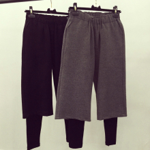 2016春季新款韩版松紧腰毛呢假两件阔腿裤宽松显瘦休闲长裤子女潮