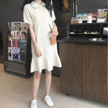 夏季新款学院风翻领POLO短袖荷叶边连衣裙宽松显瘦中长裙子女学生