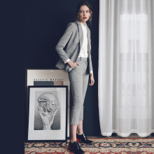奥芝国OL羊毛混纺春装2017新款气质春夏套装九分西裤修身小西装女