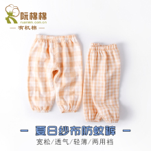 有机棉婴儿裤子夏春秋防蚊裤薄款空调开裆1纱布女宝宝灯笼裤0-3岁