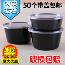贩美丽 黑色一次性餐盒批发外卖打包盒加厚快餐便当汤碗带盖饭盒