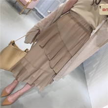 THE XIBI2017春夏新款半裙淑女轻柔荷叶边修身长款雪纺半身裙