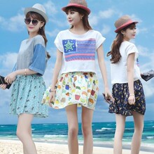 2015夏季波点印花小清新甜美碎花雪纺短裙裤女百褶裙半身短裙子