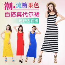 连衣裙春装新款大码胖mm女装背心裙波西米亚打底长裙吊带裙