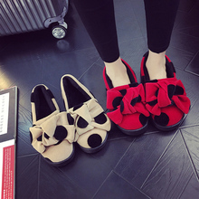 冬季秋季室内月子居家居情侣棉拖蝴蝶结女地板毛绒一字毛毛拖鞋女