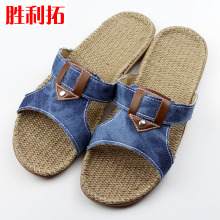 胜利拓 春夏新款情侣亚麻拖鞋凉拖鞋家居室内地板牛仔布