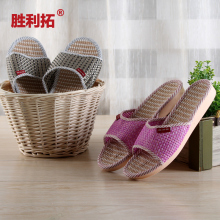 胜利拓日式软底亚麻拖鞋夏季男女居家凉拖鞋室内防滑静音地板拖鞋