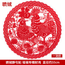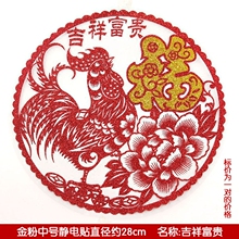 2017生肖鸡年窗花过新年装饰贴纸静电玻璃贴喜庆福字剪纸春节35cm
