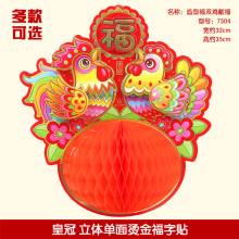 2017新年春节卡通鸡年装饰品双面立体鸡生肖对贴烫金福字门贴门幅