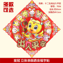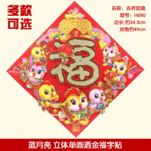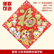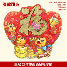 新款新年装饰贴画贴纸门贴窗贴 福字贴喜庆生肖贴画 立体春节一对