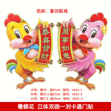 2017鸡年新年用品生肖贴纸春节立体门贴窗贴卡通鸡装饰用品一对贴