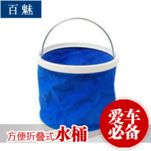 百魅 折叠式车用洗车小水桶/钓鱼水桶/储物桶/垃圾桶 蓝色9L