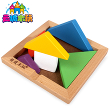大号儿童智力彩色榉木七巧板 木制3-4-5-6岁宝宝益智拼图儿童玩具