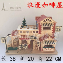 包邮 木质拼装DIY仿真模型 3D浪漫爱情咖啡屋木制3D立体拼图玩具