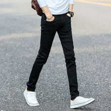 春季黑色男士百搭牛仔裤韩版修身型紧身小脚裤潮男装直筒男裤子长