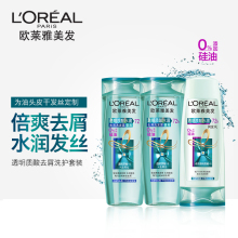 欧莱雅美发透明质酸水润控油保湿去屑止痒洗护套装400ml*3