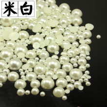 半面平底仿珍珠手机壳DIY贴钻婚鞋材料包香水散珠 米白