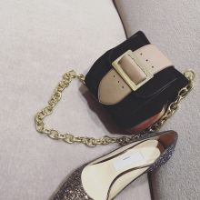 【南风】拼色锁扣包2017欧美时尚新款单肩女包复古斜跨链条女包潮